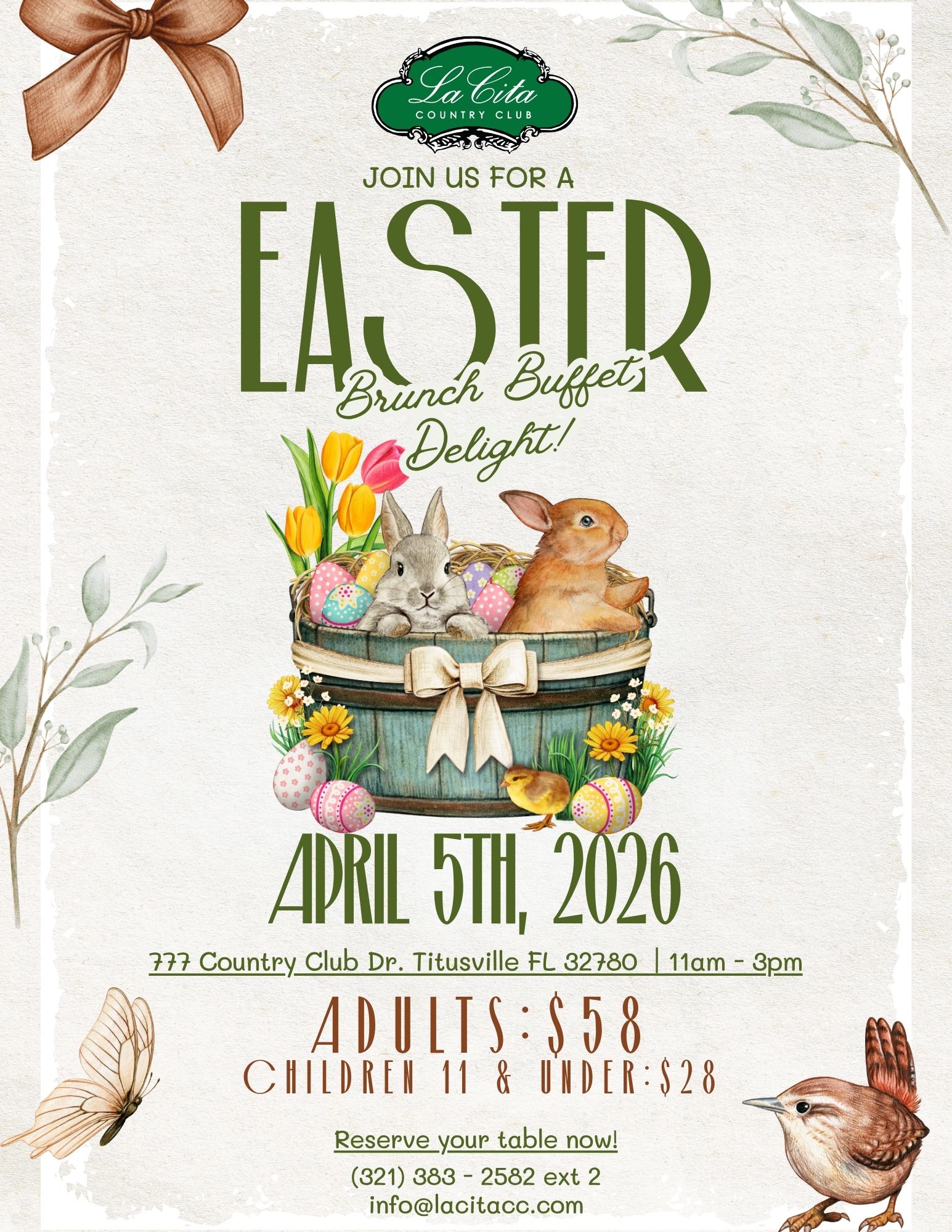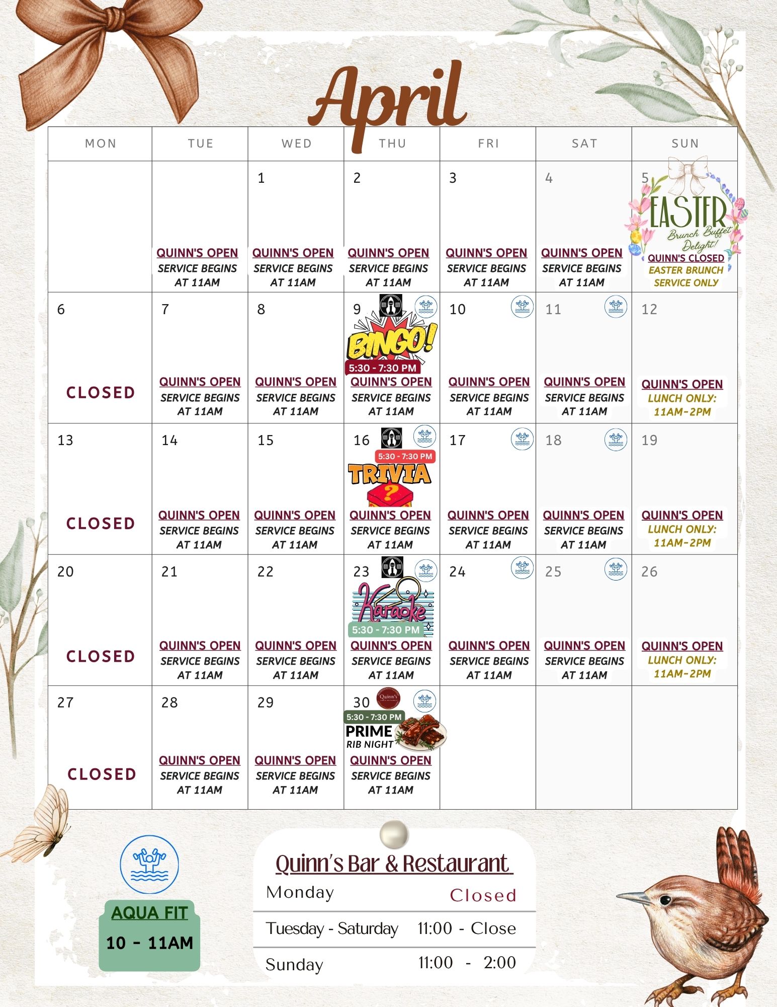 Sunday: Lunch Service Only: 11am – 2pm
